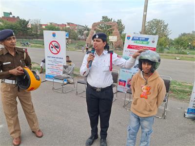 डायनासोर पार्क सेक्टर 49 में यातायात के नियमों का पालन निर्देश देते हुए चंडीगढ़ ट्रैफिक