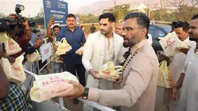 एक-दूजे के हुए अथिया शेट्टी और केएल राहुल:सुनील शेट्टी ने शादी के बाद मीडिया को बांटी मिठाई, IPL के बाद होगा रिसेप्शन