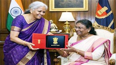 राष्ट्रपति द्रौपदी मुर्मु से मिलीं वित्त मंत्री निर्मला सीतारमण, और उन्हें लाल ‘डिजिटल बही-खाता’ दिखाया