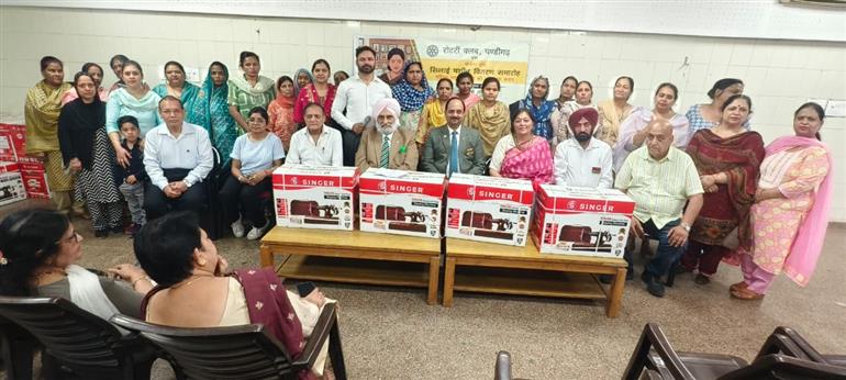 चंडीगढ़ : अंतरराष्ट्रीय महिला दिवस के अवसर पर आज कम्युनिटी सेंटर, सेक्टर-42, चंडीगढ़ में रोटरी क्लब, चंडीगढ़ एवं नेचर नाइन फाउंडेशन द्वारा "प्रोजेक्ट वृद्धि" के अंतर्गत सिलाई मशीन वितरण समारोह का आयोजन किया गया। कार्यक्रम का मुख्य उद्देश्य महिलाओं को आत्मनिर्भर बनाना तथा उन्हें स्वरोजगार के लिए प्रेरित करना रहा। इस अवसर पर मुख्य अतिथि रो. रवि प्रकाश (डी.जी., रोटरी मंडल 3080) की गरिमामयी उपस्थिति में 21 सिलाई मशीनें जरूरतमंद महिलाओं को वितरित की गईं, ताकि वे घर से ही कार्य कर अपने परिवार की आर्थिक स्थिति को सुदृढ़ बना सकें। इस मौके पर आभा शर्मा प्रेसिडेंट रोटरी क्लब चंडीगढ़, अरुण अग्रवाल सेक्रेटरी रोटरी क्लब चंडीगढ़ और नीरज सूद-नेचर नाइन फाउंडेशन से उपस्थित थे।