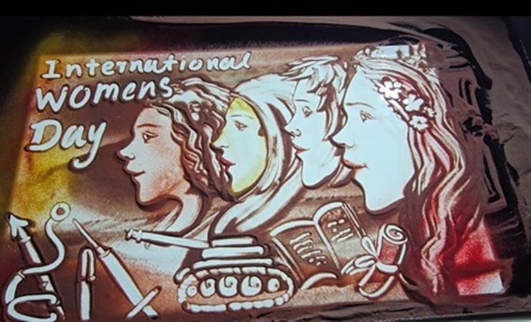 देशभर में आज रविवार को अंतरराष्ट्रीय महिला दिवस उत्साहपूर्वक मनाया जा रहा है। इस अवसर पर सुप्रसिद्ध रेत कलाकार मानस कुमार साहू ने अपने स्टूडियो में एक विशेष सैंड एनीमेशन तैयार किया है। मात्र 10 मिनट में निर्मित यह कलाकृति महिलाओं के सामर्थ्य और उनकी उपलब्धियों को रेखांकित करती है। साथ ही, यह कलाकृति महिला सशक्तीकरण, समानता और विश्व शांति का प्रभावी संदेश भी देती है।