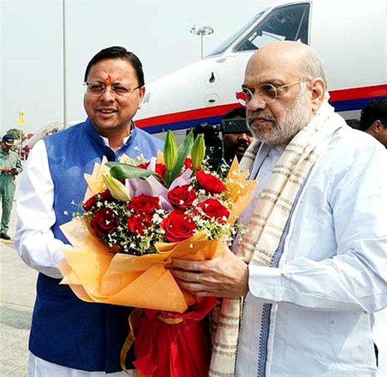 केंद्रीय गृह एवं सहकारिता मंत्री अमित शाह आज शनिवार को देवभूमि उत्तराखंड के दौरे पर हैं। उनके दौरे को लेकर राज्य में खासा उत्साह देखने को मिल रहा है। अमित शाह के देहरादून के जौलीग्रांट एयरपोर्ट पहुंचने पर, मुख्यमंत्री पुष्कर सिंह धामी ने उनका गर्मजोशी से स्वागत किया। सीएम धामी ने उन्हें पुष्पगुच्छ भेंट कर उनका अभिनंदन किया। मुख्यमंत्री धामी ने अपने सोशल मीडिया एक्स पर अमित शाह के साथ फोटो शेयर करते हुए लिखा, “सहकारिता से समृद्धि की नींव रखने वाले, सशक्त व सुरक्षित भारत के संकल्प को साकार करने वाले आदरणीय केंद्रीय गृह एवं सहकारिता मंत्री अमित शाह का देवभूमि उत्तराखंड आगमन पर जौलीग्रांट एयरपोर्ट पर हार्दिक स्वागत एवं अभिनंदन किया।” एयरपोर्ट पर स्वागत के बाद अमित शाह हेलीकॉप्टर से हरिद्वार के लिए रवाना हुए। हरिद्वार पहुंचकर वे बैरागी कैंप मैदान में आयोजित राज्य सरकार के ‘4 साल बेमिसाल’ कार्यक्रम में मुख्य अतिथि के रूप में शामिल हुए। इस कार्यक्रम के जरिए राज्य सरकार अपने चार साल के कार्यकाल की उपलब्धियों को जनता के सामने रखेगी। इस दौरान केंद्रीय मंत्री अमित शाह राज्य सरकार द्वारा आयोजित प्रदर्शनी का अवलोकन भी करेंगे। हीं, केंद्रीय गृह मंत्री अमित शाह की जनसभा को लेकर प्रशासन ने सुरक्षा के कड़े इंतजाम किए हैं। पुलिस और प्रशासन के वरिष्ठ अधिकारी मौके पर मौजूद हैं और हर व्यवस्था पर नजर बनाए हुए हैं। कार्यक्रम स्थल के आसपास सुरक्षा के कई घेरे बनाए गए हैं ताकि सभा शांतिपूर्ण तरीके से संपन्न हो सके। कार्यक्रम के मंच पर भारतीय जनता पार्टी के कई वरिष्ठ नेता और मंत्री भी मौजूद हैं। इनमें प्रमुख रूप से सौरभ बहुगुणा, रमेश पोखरियाल, तीरथ सिंह रावत, विजय बहुगुणा, स्वामी यतीश्वरानंद, अजय भट्ट, सुबोध उनियाल, अजय टम्टा, त्रिवेंद्र सिंह रावत, धन सिंह रावत, विजयराज लक्ष्मी, रेखा आर्या, सतपाल महाराज और अनिल बलूनी शामिल हैं।