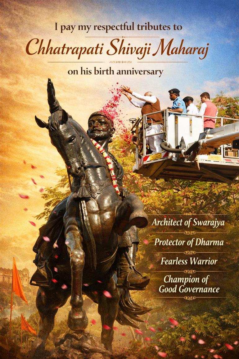 मराठा साम्राज्य के संस्थापक एवं ‘हिंदवी स्वराज्य’ के प्रणेता छत्रपति शिवाजी महाराज की जयंती पर उपराष्ट्रपति सीपी राधाकृष्णन और विभिन्न दलों के शीर्ष नेताओं ने उनके अदम्य साहस, दूरदर्शी नेतृत्व और जनकल्याणकारी शासन को नमन करते हुए उनके आदर्शों को राष्ट्र निर्माण के लिए प्रेरणास्रोत बताया।
