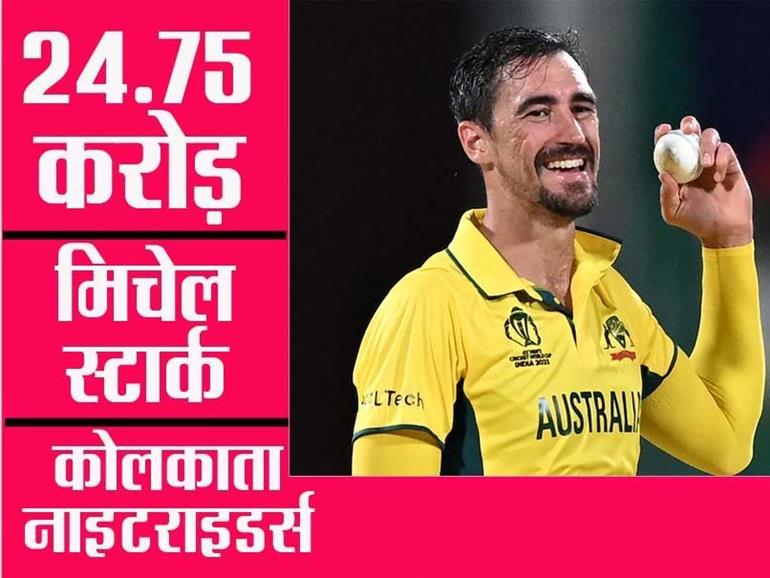 - मिचेल स्टार्क को KKR ने रिकॉर्ड 24.75 करोड़ रुपए की बोली लगाकर अपनी टीम का हिस्सा बनाया।