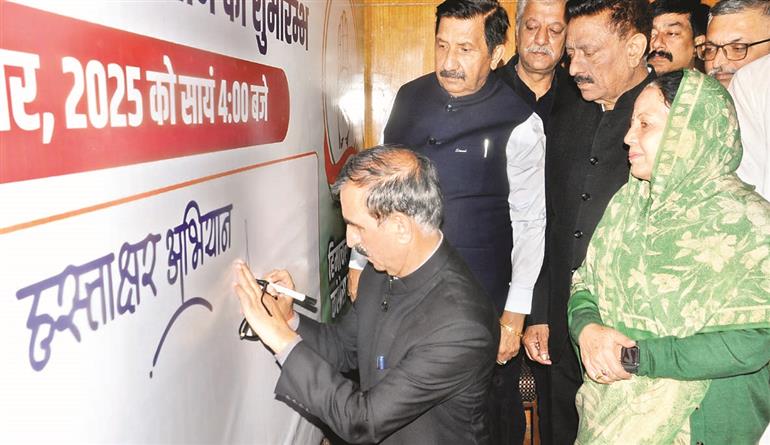 मुख्यमंत्री सुक्खू ने कहा कि आज देश के लोकतंत्र को बचाने के लिए जनमत की रक्षा के लिए सभी को एकजुटता के साथ आना होगा। हरियाणा, महाराष्ट्र और कर्नाटक में भाजपा ने वोट चोरी कर सत्ता हासिल की है। कांग्रेस का यह भाजपा के खिलाफ हस्ताक्षर अभियान एक जन जागरण अभियान बनाया जाएगा। प्रदेश में इस अभियान को तेज गति से पूरा किया जाएगा। उपमुख्यमंत्री ने कहा कि यह हस्ताक्षर अभियान जिला, ब्लॉक से लेकर गांव-गांव तक जाएगा।