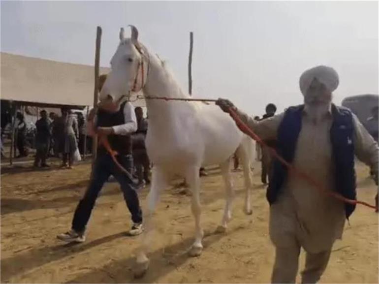 कुरुक्षेत्र : कुरुक्षेत्र के पिहोवा पशु मेले में 1 करोड़ का घोड़ा पहुंचा है। यह घोड़ा पंजाब के संगरूर से लाया गया है। घोड़े का नाम प्रताप रूप है, जो सिर से पैर तक पूरी तरह सफेद है। घोड़े की उम्र 28 महीने की है और यह 67 इंच ऊंचा है। लोग घोड़े के साथ फोटो खिंचवाने आ रहे हैं।