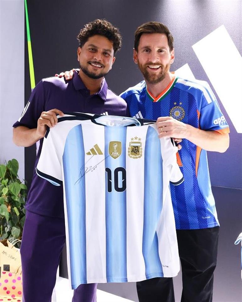 लियोनेल मेसी के भारत दौरे के दौरान कुलदीप यादव को अर्जेंटीना की ऑटोग्राफ वाली जर्सी भेंट की गई। यह तस्वीर एडिडास इंडिया के आधिकारिक सोशल मीडिया हैंडल पर साझा की गई, जिसमें कुलदीप के साथ भारत के नामी पैरा एथलीट भी नजर आए। इस खास मौके पर कुलदीप की खुशी साफ झलक रही थी, क्योंकि वह लंबे समय से मेसी और एफसी बार्सिलोना के बड़े प्रशंसक रहे हैं।