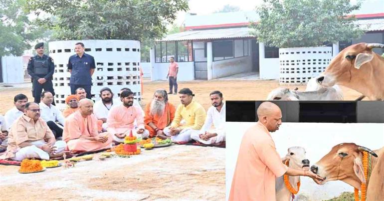 गोरखपुर: दीपावली के पंच दिवसीय महापर्व की श्रृंखला के महत्वपूर्ण पर्व गोवर्धन पूजा के पावन अवसर पर गोरक्षपीठाधीश्वर एवं मुख्यमंत्री योगी आदित्यनाथ ने बुधवार प्रात: गोरखनाथ मंदिर की गोशाला में विधि विधान से गोवर्धन पूजा की। गोपूजन के बाद मुख्यमंत्री ने गोसेवा की और प्रदेशवासियों को गोवर्धन पूजा की हार्दिक बधाई एवं शुभकामनाएं देते हुए कहा कि गोवंश भारत की समृद्धि का आधार रहा है। सरकार गो संरक्षण और संवर्धन के लिए कई योजनाओं के जरिये सतत प्रयास कर रही है। दीपावली के दिन सोमवार से ही गोरखपुर प्रवास कर रहे मुख्यमंत्री योगी आदित्यनाथ ने बुधवार सुबह गोरखनाथ मंदिर की गोशाला में गोवर्धन पूजा की।