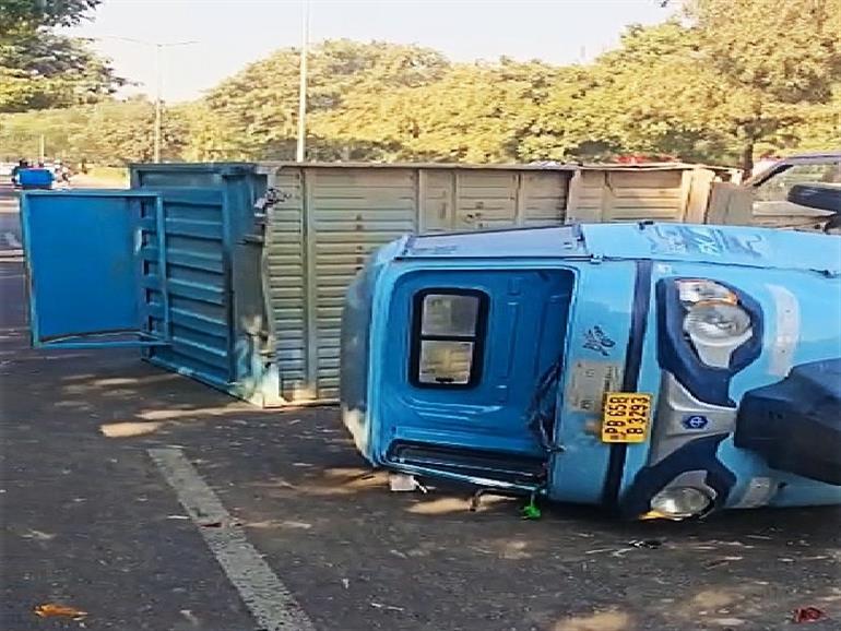 चंडीगढ़ में लोडिंग ऑटो पलटा:सवारियां ला रहे अन्य ऑटो और कार को किया क्षतिग्रस्त; चालक अस्पताल में भर्ती, सड़क पर जाम