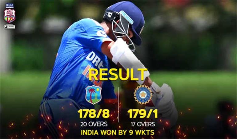 वेस्ट इंडीज ने शिमरन हेटमायर (39 गेंद, 61 रन) के जुझारू अर्द्धशतक की बदौलत भारत के सामने 179 रन का लक्ष्य रखा। जायसवाल-गिल की जोड़ी के दम पर भारत 17 ओवर में ही इस लक्ष्य तक पहुंच गया।