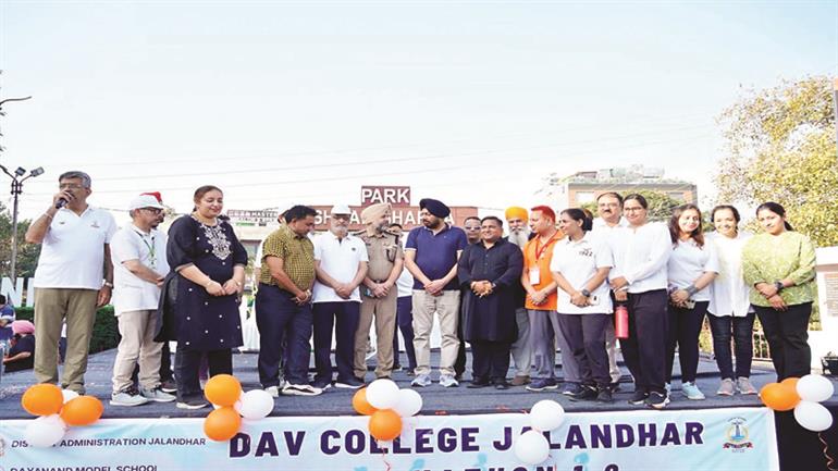 जालंधर : डीएवी कालेज जालंधर ने शनिवार को डीएवी वॉकथॉन 1.0 का आयोजन किया। यह राज्य स्तरीय अभियान युद्ध नशेयां विरुद्ध के अंतर्गत जिला प्रशासन के सहयोग से नशाखोरी के विरुद्ध जनजागरूकता हेतु आयोजित एक पदयात्रा थी। इस अभियान में छह डीएवी संस्थानों डीएवी कालेज जालंधर, डीएवी फिजियोथैरेपी एंड रिहेबिलिटेशन संस्थान, महात्मा हंसराज डीएवी नर्सिंग संस्थान, पुलिस डीएवी पब्लिक स्कूल, दयानंद मॉडल स्कूल (मॉडल टाउन) तथा दयानंद मॉडल स्कूल (दयानंद नगर) के 600 से अधिक विद्यार्थियों, अध्यापकों एवं अभिभावकों ने भाग लेकर शारीरिक स्वास्थ्य तथा नशामुक्त जीवन का संदेश दिया। यह वॉकथॉन प्रात: 6:15 बजे गुरु गोबिंद सिंह स्टेडियम से हरी झंडी दिखाकर आरंभ किया गया और मॉडल टाउन स्थित शिवानी पार्क में संपन्न हुआ। समापन समारोह में उपमंडल मजिस्ट्रेट नवदीप सिंह (पीसीएस तथा सहायक पुलिस आयुक्तमनमोहन सिंह (पीपीएस मुख्य रूप से उपस्थित रहे। उल्लेखनीय है कि एसीपी मनमोहन सिंह कालेज के पूर्व छात्र भी हैं। कालेज के प्राचार्य डा. अनूप कुमार ने वरिष्ठ उपप्राचार्य प्रो. कुॅंवर राजीव एवं उपप्राचार्या प्रो. सोनिका दानिया, रजिस्ट्रार प्रो. अशोक कपूर, डिप्टी रजिस्ट्रार प्रो. मनीष खन्ना, ईएमए की अधिष्ठाता डा. एकजोत कौर तथा कार्यक्रम समन्वयक प्रो. ईशा सहगल के साथ मिलकर अतिथियों का स्वागत किया तथा सम्मान स्वरूप उन्हें पौधे भेंट किए।