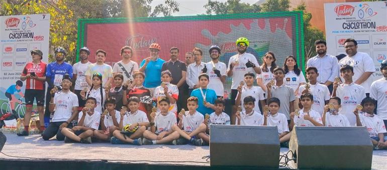 पंचकूला:--विश्व साईकल दिवस पर लोगों को तेल संरक्षण, नशे से दूर रहने और फिटनेस के प्रति जागरूक करने के उद्देश्य से टीम सॉल्यूशन्स की तरफ से चंडीगढ़ ट्राईसिटी टुडेज साइक्लोथान-2024 का आयोजन किया गया। पेडल फ़ॉर हेल्थ- बर्न फैट नॉट फ्यूल टैग लाइन के साथ आयोजित इस साइक्लोथान में बच्चों व युवाओं ने बढ़चढ़ कर भाग लिया। शालबी हॉस्पिटल, टुडे मिल्क प्रोडक्ट्स, ड्यूक, बोन, जल नेचुरल मिनरल वाटर और डेकाथलान के सहयोग से ताऊ देवी लाल स्टेडियम में आयोजित चंडीगढ़ ट्राईसिटी टुडेज साइक्लोथान के बारे में जानकारी देते हुए आयोजक नवल किशोर ने बताया कि साइक्लोथान में 100 से अधिक बच्चों और युवाओं ने भाग लिया। 03 केटेगरी में इसे आयोजित किया गया था। पहली केटेगरी में साइकिलिस्ट को 60 किलोमीटर, दूसरी केटेगरी में 30 किलोमीटर और तीसरी केटेगरी में 10 किलोमीटर थी। साइकिलिंग को लेकर प्रतिभागियों का उत्साह देखते ही बनता था। आयोजकों ने झंडी दिखा कर तीनो केटेगरी के प्रतिभागियों को रवाना किया।