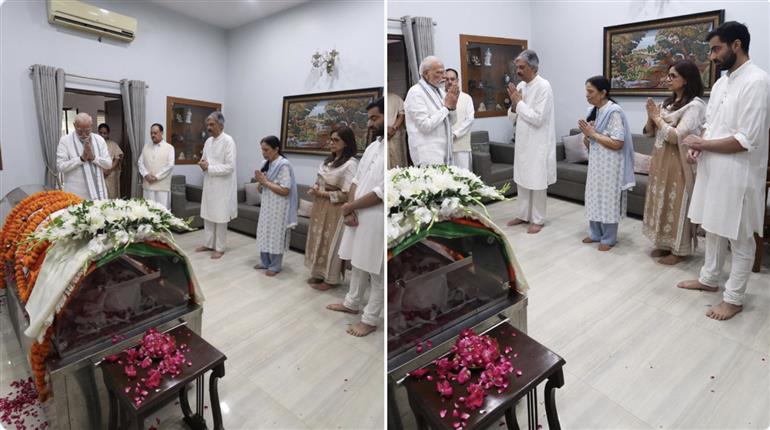 प्रधानमंत्री नरेंद्र मोदी ने मंगलवार को भारतीय जनता पार्टी (भाजपा) के वरिष्ठ नेता और दिल्ली भाजपा के पहले अध्यक्ष प्रोफेसर विजय कुमार मल्होत्रा के घर जाकर श्रद्धांजलि अर्पित की। विजय कुमार मल्होत्रा का मंगलवार सुबह निधन हो गया है। उन्होंने शोक संतप्त परिवार के प्रति संवेदना भी व्यक्त की।पीएम मोदी ने वीके मल्होत्रा को याद करते हुए कहा कि दिल्ली के विकास और हमारी पार्टी के सुशासन के एजेंडे को आगे बढ़ाने में उनके योगदान को हमेशा याद रखा जाएगा।