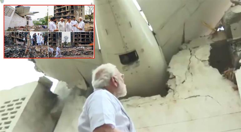 अहमदाबाद: प्रधानमंत्री नरेंद्र मोदी अहमदाबाद में हुई विमान दुर्घटना के घटनास्थल का जायजा लेने शुक्रवार को यहां पहुंचे। अहमदाबाद पहुंचने के बाद प्रधानमंत्री घटनास्थल पर गए और हालात का जायजा लिया। इसके बाद वह अस्पताल गए और घायलों से मुलाकात कर उनके स्वास्थ्य के बारे में जानकारी ली। प्रधानमंत्री ने इस दुर्घटना में एकमात्र जीवित बचे व्यक्ति रमेश विश्वास से भी मुलाकात कर उनके स्वास्थ्य के बारे में जानकारी ली।