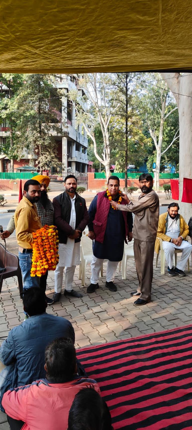 चंडीगढ़:--आज नगर निगम के जन शौचालय समिति के सफाई मित्रों ने नगर निगम कार्यालय के बाहर एक भव्य कार्यक्रम आयोजन के दौरान कांग्रेस पार्टी के प्रधान श्री एच. एस. लक्की जी और पार्षद जसवीर बंटी का जोरदार स्वागत किया गया और साथ ही आभार जताया गया। यह स्वागत और आभार समारोह शौचालय के सफाई मित्रों के लिए डीसी रेट पास करवाने के उपलक्ष्य में आयोजित किया गया था।