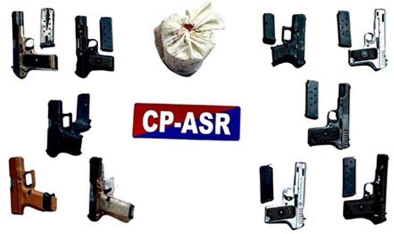 इनसे बरामद हथियारों में चार 9 एमएम ग्लॉक पिस्तौलें और छह .30 बोर की पिस्तौलें शामिल हैं।