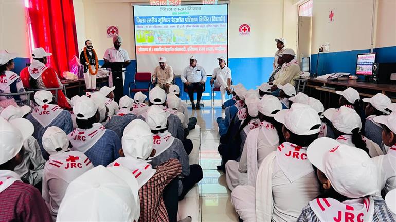 सिरसा (सतीश बंसल) : जिला रेडक्रॉस सोसायटी द्वारा डीएवी पुलिस पब्लिक स्कूल में पांच दिवसीय जिला स्तरीय जूनियर रेडक्रॉस ट्रेनिंग कैंप का शुभारंभ किया गया। इस प्रशिक्षण शिविर में जिले के विभिन्न विद्यालयों से आए 120 छात्र-छात्राएं व काउंसलर भाग ले रहे हैं। जिला रेडक्रॉस सोसायटी के सचिव लाल बहादुर बैनीवाल ने बताया कि जिला स्तरीय जूनियर रेडक्रॉस ट्रेनिंग कैंप 15 सितंबर से 19 सितंबर तक आयोजित किया जा रहा है।