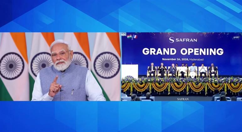 प्रधानमंत्री नरेन्द्र मोदी ने बुधवार सुबह 10 बजे वीडियो कॉन्फ्रेंसिंग के माध्यम से जीएमआर एयरोस्पेस और औद्योगिक पार्क- एसईजेड, राजीव गांधी अंतरराष्ट्रीय हवाई अड्डा, हैदराबाद स्थित सफ्रान एयरक्राफ्ट इंजन सर्विसेज इंडिया (एसएईएसआई) सुविधा केंद्र का उद्घाटन किया।
