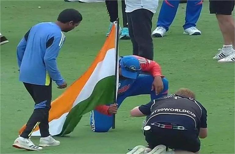 भारतीय कप्तान रोहित शर्मा आईसीसी टी20 विश्व कप 2024 के फाइनल में दक्षिण अफ्रीका को 7 रन से हराकर खिताब जीतने के बाद मैदान पर गिर पड़े और उनकी आंखों में आंसू आ गए। लेकिन इसके बाद रोहित ने जो किया वह और भी खास था क्योंकि उन्होंने मैदान पर भारतीय झंडा फहराया और फिर उसे आउटफील्ड पर लगाया।