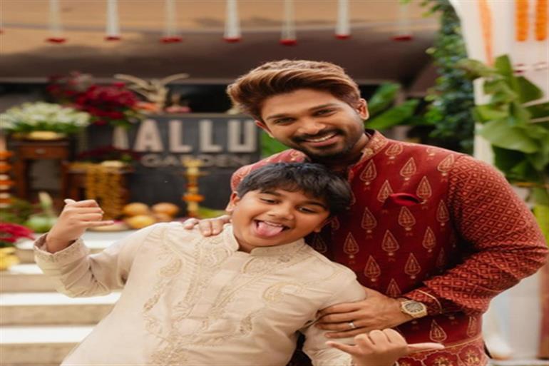 नई दिल्ली : दक्षिण भारत के सुपरस्टार अल्लू अर्जुन ने अपने बेटे अयान के जन्मदिन पर एक बेहद प्यारा पोस्ट शेयर की, जिसने फैंस का दिल जीत लिया। अल्लू अर्जुन ने अपने इंस्टाग्राम पोस्ट में एक तस्वीर साझा की, जिसमें वह मारून कलर का पारंपरिक कुर्ता पहने हुए नजर आ रहे है। वह अपने बेटे को गले लगाकर मुस्कुरा रहे हैं, और उनके चेहरे पर पिता का गर्व साफ झलक रहा है। वहीं अयान भी पारंपरिक आउटफिट में नजर आ रहे है और क्यूट पोज दे रहे है। पोस्ट के कैप्शन में अल्लू अर्जुन ने लिखा, 'मेरी जिंदगी के प्यार को जन्मदिन की बहुत-बहुत बधाई। हैप्पी बर्थडे... मेरे चिन्नी बाबू।'