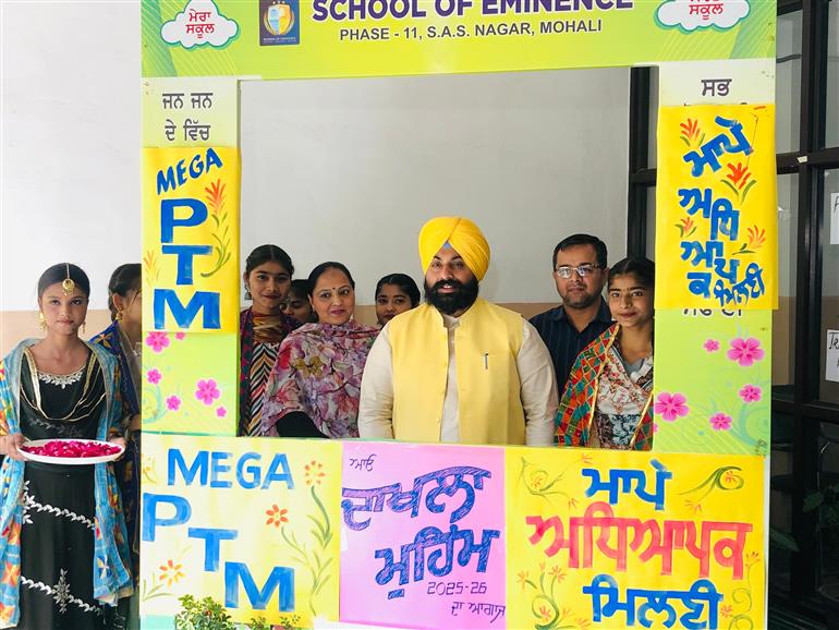 चंडीगढ़ / साहिबज़ादा अजीत सिंह नगर: पंजाब के शिक्षा मंत्री हरजोत सिंह बैंस ने आज स्कूल ऑफ एमिनेंस, फेज 11, मोहाली में इस सत्र की अंतिम मेगा पी टी एम (अभिभावक शिक्षक बैठक) की समीक्षा करते हुए कहा कि पंजाब के मुख्यमंत्री श्री भगवंत सिंह मान के नेतृत्व वाली सरकार राज्य के सरकारी स्कूलों में पढ़ने वाले विद्यार्थियों के सपनों को पंख देकर जीवन में ऊंचे पदों पर पहुंचाने के लिए प्रतिबद्ध है ताकि उन्हें अपने जीवन में कभी यह महसूस न हो कि उन्हें सरकारी स्कूलों में पढ़ते समय वह सुविधाएं और सुख-सुविधाएं नहीं मिलीं जो केवल निजी स्कूलों में महंगी फीस देकर मिल सकती हैं।