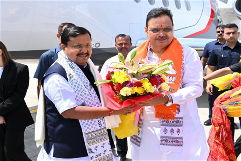 भाजपा अध्यक्ष नितिन नबीन का राजस्थान दौरा : जयपुर एयरपोर्ट पर CM भजनलाल शर्मा ने किया स्वागत