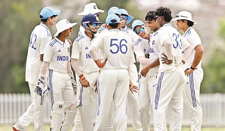 ब्रिसबेन तेज गेंदबाज दीपेश देवधरन की अगवाई में गेंदबाजों के शानदार प्रदर्शन की मदद से भारतीय अंडर-19 टीम ने ऑस्ट्रेलिया अंडर-19 टीम की पहली पारी 243 रन पर ढेर कर दी। भारत और ऑस्ट्रेलिया की अंडर-19 टीम के बीच पहले युवा टेस्ट मैच के शुरुआती दिन तमिलनाडु के दीपेश ने अपना जलवा बिखेरा और 45 रन देकर पांच विकेट लिए, जिससे ऑस्ट्रेलिया की टीम बड़ा स्कोर खड़ा नहीं कर सकी। ऑस्ट्रेलिया की पारी समाप्त होने के साथ ही दिन के खेल की समाप्ति कर दी गई। युवा टेस्ट सीरीज से पहले आयुष महात्रे की अगवाई में भारतीय टीम ने युवा वनडे सीरीज में 3-0 से जीत दर्ज की थी।