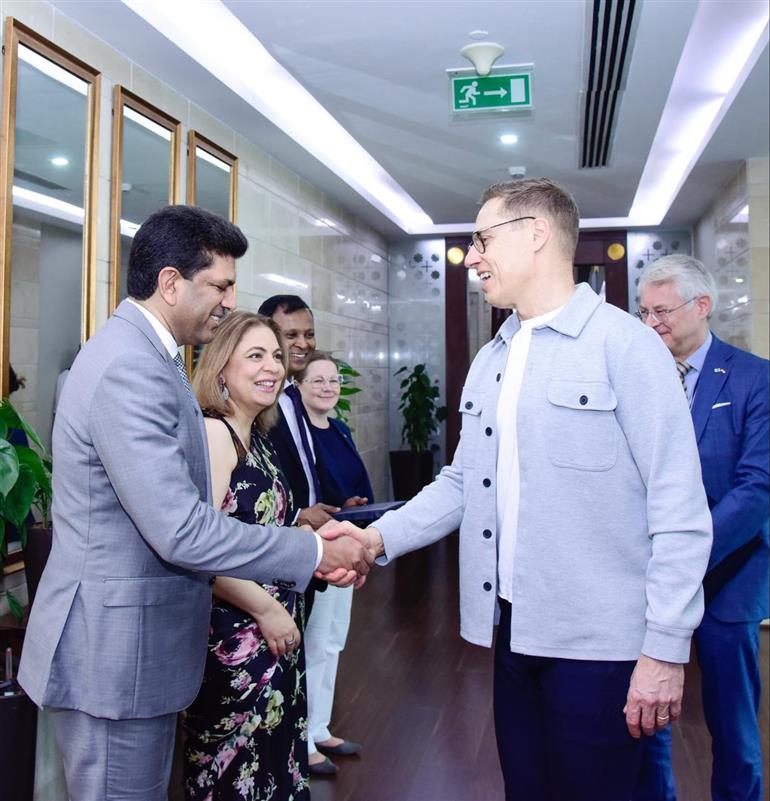 फिनलैंड के राष्ट्रपति अलेक्जेंडर स्टब ने रविवार को भारत का अपना राजकीय दौरा पूरा किया और ग्रामीण विकास और संचार राज्य मंत्री चंद्रशेखर पेम्मासानी ने उन्हें गर्मजोशी से विदा किया।