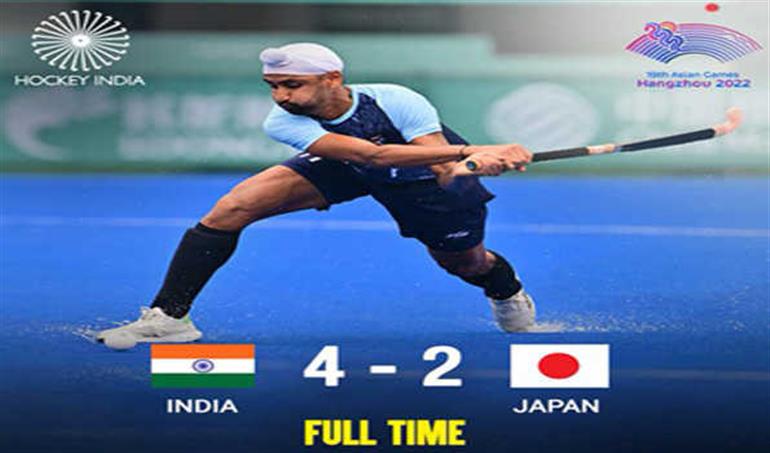 हांगझोउ: हरमनप्रीत सिंह की अगुवाई वाली भारतीय पुरुष हॉकी टीम ने शुक्रवार को चीन में चल रहे 19वें एशियाई खेलों के पुरुष हॉकी मुकाबले के पहले राउंड में जापान को 4-2 से हराकर प्रतियोगिता में अपनी तीसरी जीत दर्ज की है।