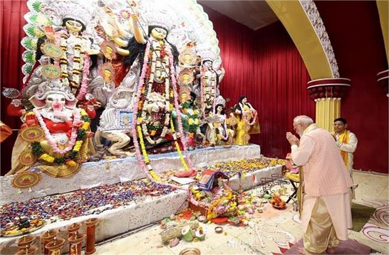 प्रधानमंत्री नरेन्द्र मोदी ने मंगलवार को महा अष्टमी के अवसर पर दक्षिणी दिल्ली के सीआर पार्क में दुर्गा पूजा पंडाल का दौरा किया और मंत्रोच्चार के बीच देवी की अराधना की। प्रधानमंत्री ने क्षेत्र के प्रतिष्ठित काली बाड़ी में आरती भी की और पारंपरिक बंगाली संस्कृति के अनुसार आयोजित समारोह में हिस्सा लिया।