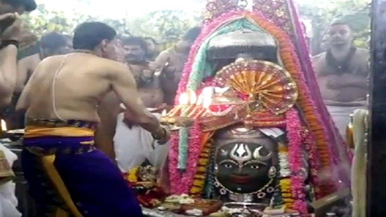 महाशिवरात्रि के पावन अवसर पर बाबा महाकालेश्वर मंदिर शिवभक्ति के रंग में पूरी तरह सराबोर दिखाई दिया। ‘हर-हर महादेव’ के गगनभेदी जयघोष के बीच श्रद्धालुओं का सैलाब रात से ही दर्शन के लिए उमड़ पड़ा। मंदिर के बाहर लंबी कतारें लग गईं, वहीं मंदिर प्रशासन ने सुव्यवस्थित एवं सुलभ दर्शन सुनिश्चित करने के लिए विशेष व्यवस्थाएं कीं। प्रशासन के अनुमान के अनुसार, महाशिवरात्रि के इस महापर्व पर दस लाख से अधिक श्रद्धालु बाबा महाकाल के दर्शन के लिए उज्जैन पहुंच सकते हैं। श्रद्धालुओं की आस्था और उत्साह देखते ही बन रहा है।