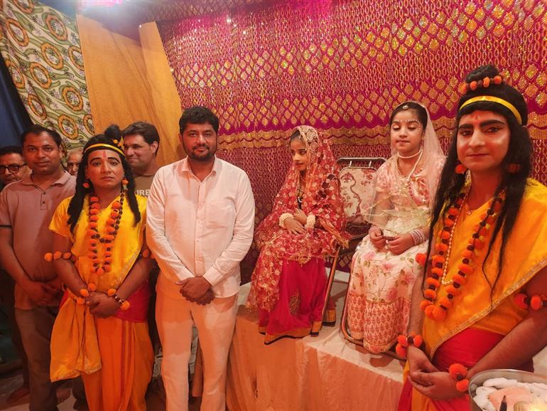 नारायणगढ़ (सुशील कुमार) : श्री सनातन धर्म महावीर दल द्वारा आयोजित श्री रामलीला मंचन के नोवें दिन लक्ष्मण मुर्छित का मंचन किया गया। कार्यक्रम की शुरूआत मुख्यातिथि नगरपालिका के पूर्व चेयरमैन अमित वालिया ने माता इुर्गा-सरस्वती की आरती उतारी और उन्होने सम्बोधित करते हुए कहा कि रामलीला मंचन के जरियें जो प्रसंग दिखाया जा रहा है श्री राम चरित्र मानिस से शिक्षा लेनी चहिये की भाई के प्रति भाई का प्यार चाहे लक्ष्मण या भरत का लेकिन कई भाई ऐसे भी है जिन्होने अपने काम के लिय जैसे रावण ने विभिष्ण को बाली ने सग्रिव को अपने देश से निकाल दिया था। । श्री राम नाट क्लब के कलाकारो ने मंचन में श्री राम जी ने लंका पर चढाई करते हुए सैनापति प्रास्त को वानर सैनापति नील के हाथो मार गिरया औा मेघनाथ.लक्ष्मण के बीच भयंकर लडाई में मेघनाथ द्वारा ब्रहम अस्तर तीर से लक्ष्मण को मुर्छित किया जहां लक्ष्मण मुर्छित से श्रराम वियोग का प्रसांग देखकर मैदान में बैठे श्रद्धालाओ के आखो में आंसु भर आये । हनुमान जी द्वारा संजीवनी का पहाड लाने का मंचन किया गया। राम का किरदार अरिष अग्रवालएलक्ष्मण का किरदार कार्तिक एसीता का किरदार हरीष,एहनुमान का किरदार अरूण कुमारएरावण का किरदार राजेश वालिया मेघनाथ का किरदार चंदेश चोपड़ा ,विभिषण का किरदार नितिन धीमान, सेनापति प्रास्त का किरदार केश्व वर्मा, कुम्भकरण का किरदार राहुल माना,सग्रीव का किरदार विंकल, जामवन्त का किरदार कृष, अंगद का किरदार योगेश अग्रवाल ने बे खुबी से निभाया।। संस्था के सदस्यो ने मुख्यातिथि को सम्मानित किया। इस अवसर पर उपप्रधान विनोद वर्मा, रमेश्वर शर्मा ,आर्दष गुप्ता, विजय कंसल,कुलबीर कपूर,महासचिव राजेश वर्मा नरेश खेरपा सतीश अग्रवाल राजपाल धीमान ,मनुज , दिवांशु,पर्दामैन देवेन्द्र कुकु ,रंगमंच विक्की व लक्की,मेकपमैन रजन वर्मा,परिक्षीत वर्मा सहित अन्य सदस्य मौजूद थे।