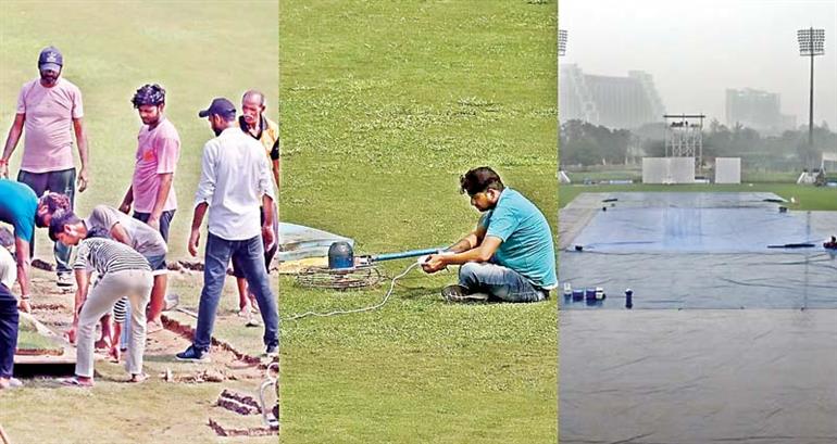 मंगलवार को अंपायरों ने तीन बार मुआयने के बाद दूसरे दिन का भी खेल रद्द कर दिया। मैदान में पांच सुपर सोपर लगाए गए, लेकिन काम नहीं बना। सूत्रों की मानें तो ग्रेटर नोएडा प्राधिकरण ने उत्तर प्रदेश क्रिकेट संघ (यूपीसीए) से दो सुपर सोपर मांगे थे, जो मेरठ स्टेडियम से भेजे गए। दिन में विवाह में इस्तेमाल होने वाले पारंपरिक शामियाने का इस्तेमाल आउटफील्ड ढंकने के लिए किया गया और शाम को बरसाती लगाई गई। कोटला से डीडीसीए अधिकारियों ने आउटफील्ड कवर भेजे।