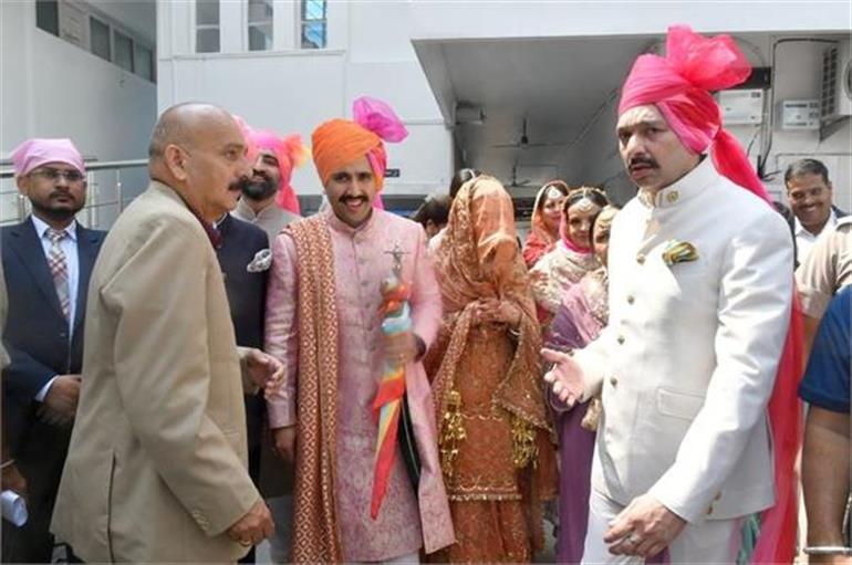शादी के इस खास मौके पर विक्रमादित्य सिंह ने पारंपरिक राजशाही अंदाज में गुलाबी रंग की पोशाक पहनी थी। वे हाथों में तलवार लिए और सिर पर पगड़ी बांधे नजर आए। उनकी माता प्रतिभा सिंह और बहनें भी उनके साथ मौजूद थीं। बारात चंडीगढ़ के होटल से निकली और फिर गुरुद्वारे पहुंची, जहां आनंद कारज की रस्में पूरी की गईं। शादी के बाद, विक्रमादित्य सिंह अपनी दुल्हन के साथ होटल लौटे और बाद में शाम को शिमला के लिए रवाना हुए।