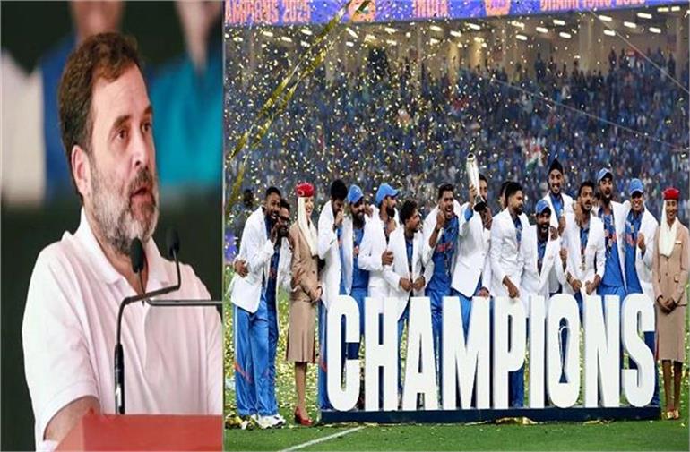 नई दिल्लीः कांग्रेस ने रविवार को भारतीय क्रिकेट टीम की आईसीसी चैम्पियंस ट्रॉफी के फाइनल में जीत की सराहना की। कांग्रेस नेता राहुल गांधी ने कहा कि टूर्नामेंट में टीम का शानदार प्रदर्शन सचमुच प्रेरणादायी है। कप्तान रोहित शर्मा के शानदार अर्धशतक की बदौलत भारत ने दुबई में फाइनल में न्यूजीलैंड को चार विकेट से हराकर अभूतपूर्व तीसरी बार चैंपियंस ट्रॉफी का खिताब जीता।