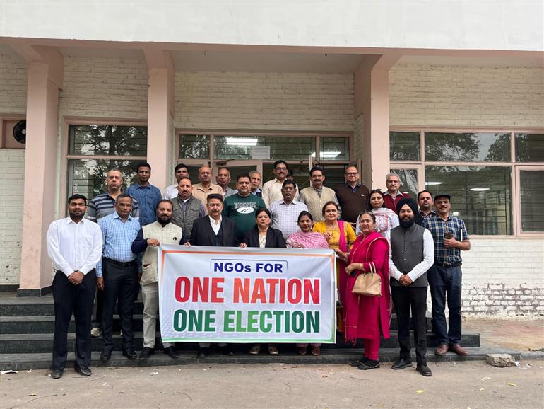 चंडीगढ़ : सेक्टर 8 स्थित सामुदायिक केंद्र में एक राष्ट्र, एक चुनाव पर विचारोत्तेजक चर्चा आयोजित की गई, जिसमें विभिन्न गैर सरकारी संगठनों के प्रमुख एकत्रित हुए। इस सत्र का उद्देश्य समन्वित चुनावों के महत्व तथा इस सुधार की वकालत करने में गैर सरकारी संगठनों की महत्वपूर्ण भूमिका पर विचार करना था।