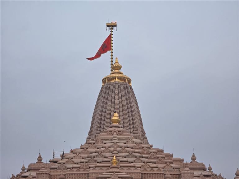 इस पर ‘ॐ’ का चिन्ह और कोविदार वृक्ष की आकृति भी अंकित है। यह पवित्र ध्वजा गरिमा, एकता और सांस्कृतिक निरंतरता का संदेश देती है और रामराज्य के आदर्शों का प्रतीक मानी जाती है। यह धर्म ध्वजा पारंपरिक उत्तर भारतीय नागर शैली में निर्मित मंदिर के ‘शिखर’ पर फहराई जाएगी, जबकि इसके चारों ओर बना लगभग 800 मीटर लंबा परकोटा दक्षिण भारतीय वास्तुकला में डिजाइन किया गया है, जो मंदिर की वास्तुशिल्प विविधता को दर्शाता है।