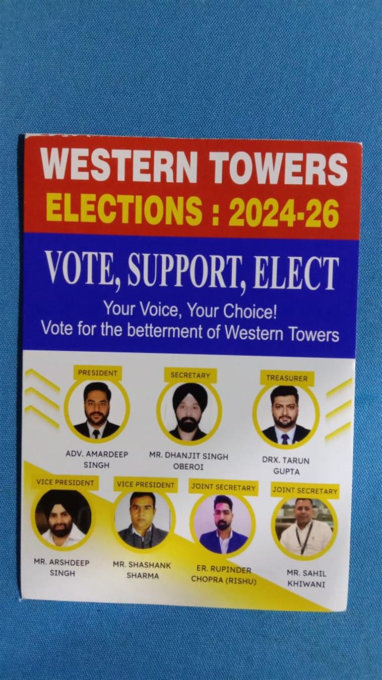 मोहाली (नीरज शर्मा): करंट आरडब्ल्यूए वेस्टर्न टावर सोसायटी सेक्टर 126 ग्रेटर मोहाली की तरफ द्वारा सभी रेजिडेंट को उनके द्वारा किए गए कार्य के बारे में जानकारी दी गई।और आने वाले समय में जो कार्य करने हैं उनके बारे में बताया गया। इस मीटिंग करंट आरडब्ल्यूए वेस्टर्न टावर सोसायटी सेक्टर 126 ग्रेटर मोहाली के सभी निवासी भारी संख्या में उपस्थित थे प्रधान के लिए वकील अमरदीप सिंह, सेक्रेटरी के लिए धनजीत सिंह ओबेरॉय, ट्रेजर के लिए तरुण गुप्ता,वाइस प्रेसिडेंट के लिए अर्शदीप सिंह,शशांक शर्मा, ज्वाइंट सेक्रेटरी के लिए साहिल खिवानी,और रुपिंदर चोपड़ा मैदान में है। वकील अमरदीप सिंह जी ने रेजिडेंट से अपील की के उन्हें वोट देकर कामयाब करें ताकि अधूरे काम बिल्डर से पूरे करवाए जाएं