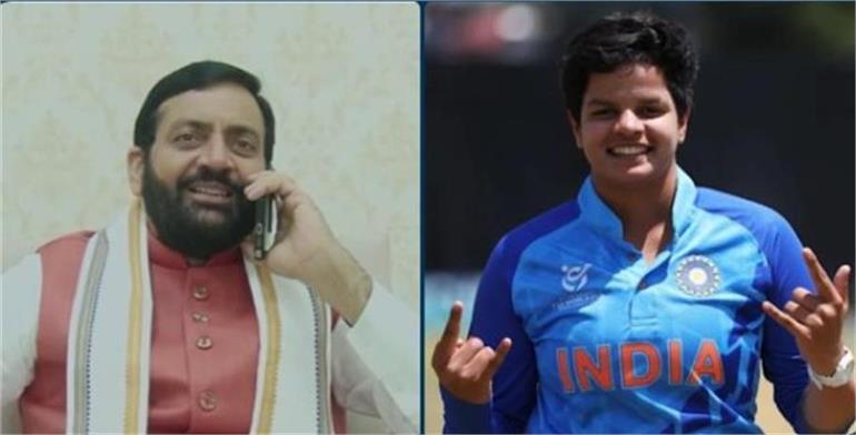 हरियाणा के मुख्यमंत्री नायब सिंह सैनी ने क्रिकेटर शैफाली वर्मा से फोन पर बात की। सीएम ने शैफाली को महिला विश्व कप जीतने और फ़ाइनल में प्लेयर ऑफ द मैच रहने पर बधाई दी। उन्होंने कहा कि पूरे प्रदेश को आपके प्रदर्शन पर गर्व है। मुख्यमंत्री ने शैफाली वर्मा को सपरिवार संत कबीर कुटीर पर आमंत्रित किया।