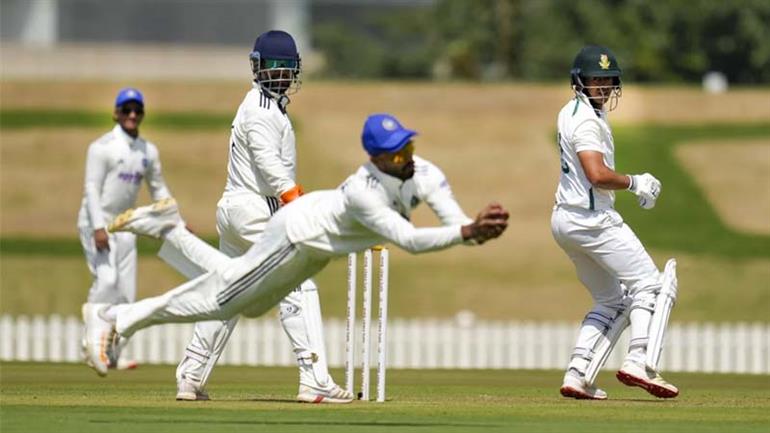मानव सुथार ने हम्जा (37) को बोल्ड कर इस साझेदारी को तोड़ा। इंडिया ए के गेंदबाजी आक्रमण के आगे दक्षिण अफ्रीकी बल्लेबाज खुलकर नहीं खेल सके और अपने विकेट गंवाते रहे। कप्तान मार्केस ऐकरमैन (पांच), लेसेगो सेनोक्वाने (37), रूबिन हरमन (15), टियान वैन वुरेन (तीन), रिवाल्डो मूनसामी (छह), शेपो मोरेकी (25) और प्रीनेलान सुब्रायेन 15 रन बनाकर आउट हुये। 49वें ओवर में बरार ने ओकुहले सेले (एक) को आउटकर 199 के स्कोर पर दक्षिण अफ्रीका की दूसरी पारी का अंत किया। पहली पारी में 75 रनों की बढ़त के साथ इंडिया को जीत के लिए 275 रनों का लक्ष्य मिला।