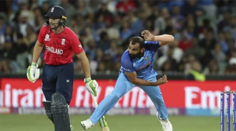 शमी की टीम में वापसी हुई। उन्होंने पहला ओवर फेंका। फिल सॉल्ट ने दूसरे ही गेंद पर चौका जड़ा। लेकिन हार्दिक पांड्या की अगली ओवर में तेजतर्रार शॉट लगाने के चक्कर में अभिषेक के हाथों लपके गए। उन्होंने 5 रन बनाए।