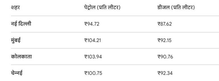 यहां देश के चार बड़े शहरों के रेट कुछ इस प्रकार हैं: