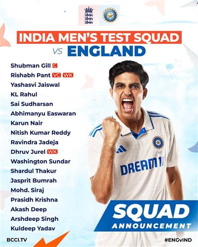 शुभमन गिल होंगे भारत के 37वें टेस्ट कप्तान, इंग्लैंड दौरे के लिए टीम घोषित