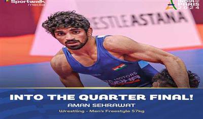अमन सहरावत 57 किग्रा वर्ग की कुश्ती के क्वार्टरफाइनल में