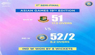 भारत ने बंगलादेश को आठ विकेट से हराया