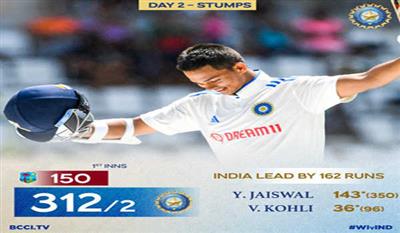 रोहित-यशस्वी की दोहरी शतकीय साझीदारी,भारत को 162 की लीड