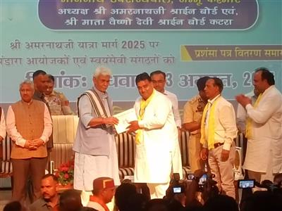 ਸ੍ਰੀ ਬਾਬਾ ਅਮਰਨਾਥ ਲੰਗਰ ਕਮੇਟੀ, ਸੁਨਾਮ, ਨੂੰ 36ਵੇਂ ਸਾਲਾਨਾ ਲੰਗਰ ਸੇਵਾ ਲਈ ਜੰਮੂ-ਕਸ਼ਮੀਰ ਦੇ ਲੈਫਟੀਨੈਂਟ ਗਵਰਨਰ ਵੱਲੋਂ ਸਨਮਾਨ