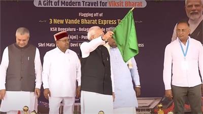 PM ਮੋਦੀ ਨੇ ਬੈਂਗਲੁਰੂ 'ਚ ਤਿੰਨ ਵੰਦੇ ਭਾਰਤ ਐਕਸਪ੍ਰੈਸ ਟ੍ਰੇਨਾਂ ਨੂੰ ਦਿਖਾਈ ਹਰੀ ਝੰਡੀ