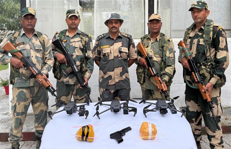 ਅੰਮ੍ਰਿਤਸਰ : ਬੀਐਸਐਫ ਅੰਮ੍ਰਿਤਸਰ ਸੈਕਟਰ ਦੀ ਟੀਮ ਨੇ ਇੱਕ ਵਾਰ ਫਿਰ ਸਰਹੱਦੀ ਪਿੰਡ ਪੁਲਮੋਰਾ ਦੇ ਇਲਾਕੇ 'ਚ 6 ਕਰੋੜ ਦੀ ਹੈਰੋਇਨ ਸਮੇਤ 3 ਡਰੋਨ ਅਤੇ ਇੱਕ ਪਿਸਤੌਲ ਜ਼ਬਤ ਕੀਤਾ ਹੈ। ਬੀਤੀ ਦਿਨੀਂ ਬੀਐਸਐਫ ਨੇ ਇਕੋ ਵਾਰ 'ਚ 6 ਡਰੋਨ ਫੜੇ ਸਨ। ਸਰਕਾਰ ਦੀਆਂ ਬਹੁਤ ਕੋਸ਼ਿਸ਼ਾਂ ਦੇ ਬਾਵਜੂਦ ਭਾਰਤ-ਪਾਕਿਸਤਾਨ ਸਰਹੱਦ 'ਤੇ ਡਰੋਨਾਂ ਅਤੇ ਹੈਰੋਇਨ ਅਤੇ ਹਥਿਆਰਾਂ ਦੀ ਸਮਗਲਿੰਗ ਰੁਕਣ ਦਾ ਨਾ ਨਹੀਂ ਲੈ ਰਹੀ ।