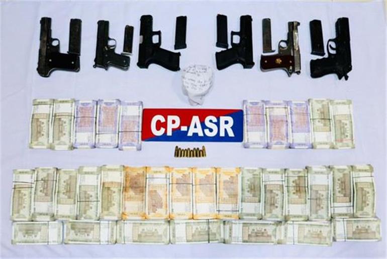 ਅੰਮ੍ਰਿਤਸਰ : ਇਕ ਖੁਫੀਆ ਜਾਣਕਾਰੀ ਅਧਾਰਤ ਕਾਰਵਾਈ 'ਚ ਅੰਮ੍ਰਿਤਸਰ ਕਮਿਸ਼ਨਰੇਟ ਪੁਲਸ ਨੇ ਸਰਹੱਦ ਪਾਰ ਹਥਿਆਰਾਂ ਅਤੇ ਨਸ਼ੀਲੇ ਪਦਾਰਥਾਂ ਦੀ ਤਸਕਰੀ 'ਚ ਸ਼ਾਮਲ ਪੰਜ ਮੁਲਜ਼ਮਾਂ ਨੂੰ ਗ੍ਰਿਫਤਾਰ ਕੀਤਾ। ਜਿਨ੍ਹਾਂ ਕੋਲੋਂ ਛੇ ਆਧੁਨਿਕ ਪਿਸਤੌਲ, 10 ਜ਼ਿੰਦਾ ਕਾਰਤੂਸ, 115 ਗ੍ਰਾਮ ਹੈਰੋਇਨ, ਅਤੇ 11.90 ਲੱਖ ਰੁਪਏ ਦੇ ਡਰੱਗ ਮਨੀ ਬਰਾਮਦ ਕੀਤੀ ਹੈ।